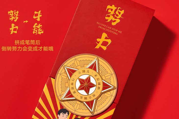 红黄主题色,正面写着大大的“努力”两字,随时提醒孩子好好学习、天天向上。