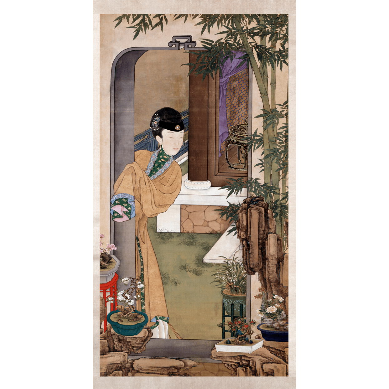 《雍正十二美人图⋅倚门观竹》